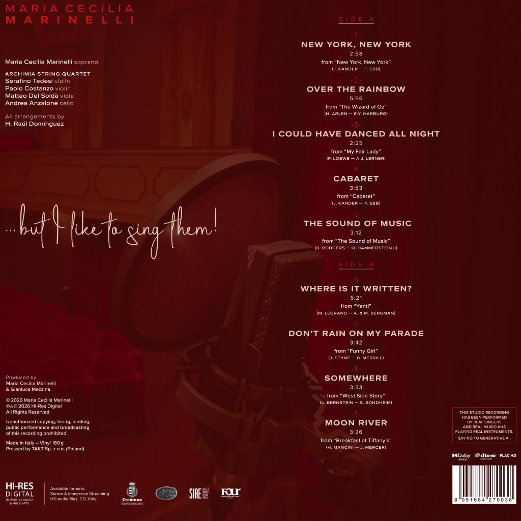 Timeless masterpieces such as the ones contained here require a vast vocal versatility, and performing them has been a challenge I greatly enjoyed. At the same time, the sonic structure of this album – through its elegant and essential design, specifically created for voice and string quartet – breathes new life into these iconic pieces of American musicals.